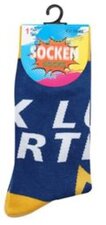Met deze grappige sokken steel jij de show! Leuk voor jezelf, maar ook leuk om cadeau te geven op een verjaardag of als kerst cadeau onder de kerstboom. Donkerblauwe sokken met witte letters "Luck Tiger 1986" erop. De sokken zijn geschikt voor dames en heren met maat 39 tot en met 46.