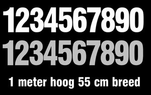Het formaat van de nummersticker is circa 100 cm hoog en 55cm breed.