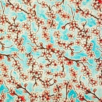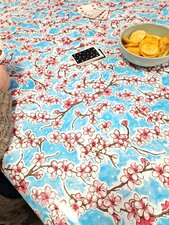 Proefstaaltje: Mexicaans tafelzeil kersenbloesem lichtblauw € 2,25
