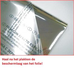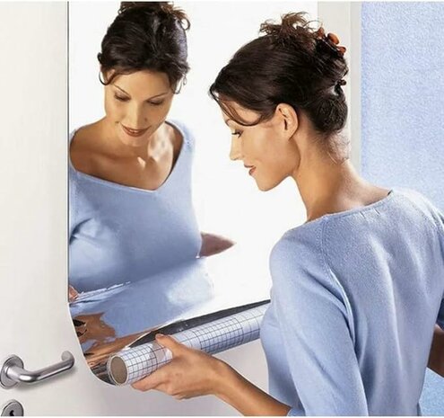 Spiegelfolie staat bijzonder sfeervol in kantoren, badkamers of slaapkamers! Dit zelfklevende folie is toepasbaar op alle gladde en vetvrije objecten. Het spiegelende folie heeft een breedte van 45cm. De lengte mag je zelf kiezen. In tegenstelling tot een echte spiegel, geeft een blik op het spiegelfolie een ietwat wazige look. - Toepasbaar op gladde en vetvrije ondergrond - Standaard breedte: 45 centimeter - Lengte: Vanaf 50 centimeter tot 10 meter (een rol plakfolie) - Weergegeven prijs is per halve meter