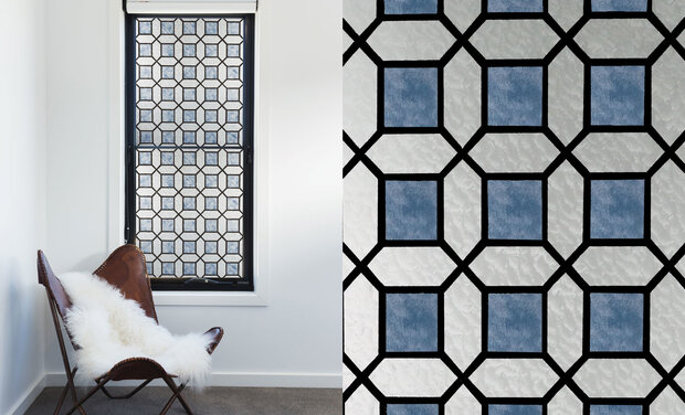 Proefstaaltje: raamfolie glas in lood blauw € 1,65