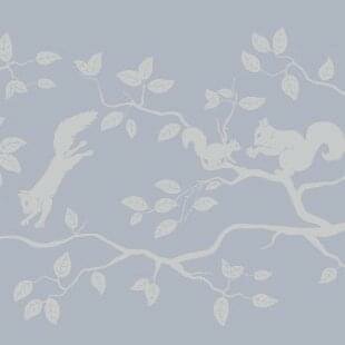 Statisch raamfolie met eekhoorntjes op takken. Het statische glasfolie hecht niet door middel van een plaklaag maar hecht door middel van statische electriciteit. De breedte is 45cm, de lengte snijden wij per staffel van 50cm voor je op maat.