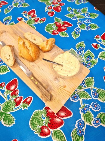 Kitsch Kitchen tafelzeil met aardbeien creëert een zomerse sfeer op jouw tafel. Dit aarbeientafelzeil is zo sterk dat het zelfs gebruikt wordt om er tassen en andere leuke accessoires mee te maken. Het pvc tafelkleed is met een vochtig doekje makkelijk af te nemen. Het is sfeervol, decoratief en functioneel op tafel en al verkrijgbaar vanaf 50 centimeter. Bestel je een hele rol? Dan profiteer van je een hoge korting! - Breedte: 120 centimeter - Lengte: Vanaf 50 centimeter tot 11 meter (een rol tafelzeil) - Profiteer van korting op een volle rol - Weergegeven prijs is per halve meter - Materiaal: Bedrukt PVC, harde rug en dun laagje draadjes textiel - Machinewasbaar: Nee