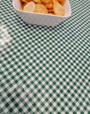 Wit met donkergroen geruit tafelzeil van Kitsch Kitchen. Dit zeil is zo sterk dat het zelfs gebruikt wordt om er tassen en andere leuke accessoires mee te maken. Het pvc tafelkleed is met een vochtig doekje makkelijk af te nemen. Het is sfeervol, decoratief en functioneel op tafel en al verkrijgbaar vanaf 50 centimeter. Bestel je een hele rol, dan profiteer je van een hoge korting! - Breedte: 120 centimeter - Lengte: Vanaf 50 centimeter tot 11 meter (een rol tafelzeil) - Profiteer van korting op een volle rol - Weergegeven prijs is per halve meter - Materiaal: Bedrukt PVC, harde rug en dun laagje draadjes textiel - Machinewasbaar: Nee