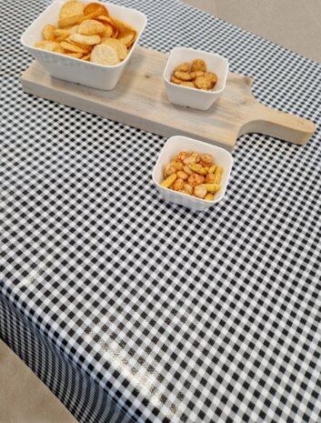 Proefstaaltje: Mexicaans tafelzeil ruitjes zwart € 2,25
