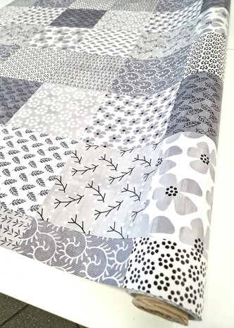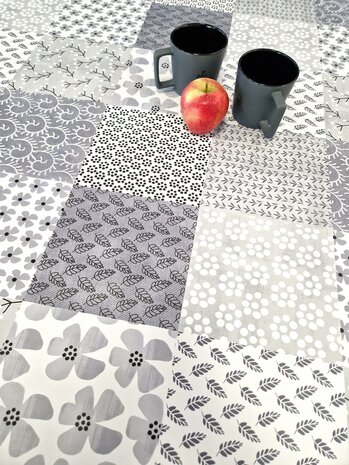 Proefstaaltje: Tafelzeil patchwork grijs € 2,25