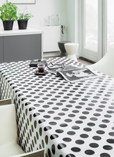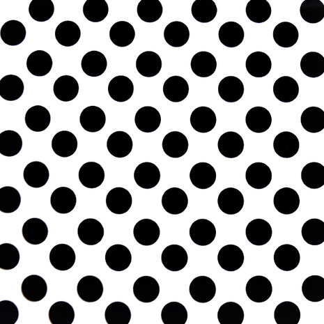 Proefstaaltje: Tafelzeil wit met grote zwarte stippen € 2,25