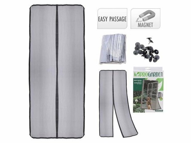 Dit vliegengordijn is eenvoudig aan je deurpost te bevestigen. Je bevestigd een klittenband strip (bijgesloten) aan de bovenkant van het kozijn en daar hang je het vliegengordijn aan vast. De zijkanten van het vliegengordijn kun je met de meegeleverde prikkers aan de zijkanten van het kozijn vast maken.
